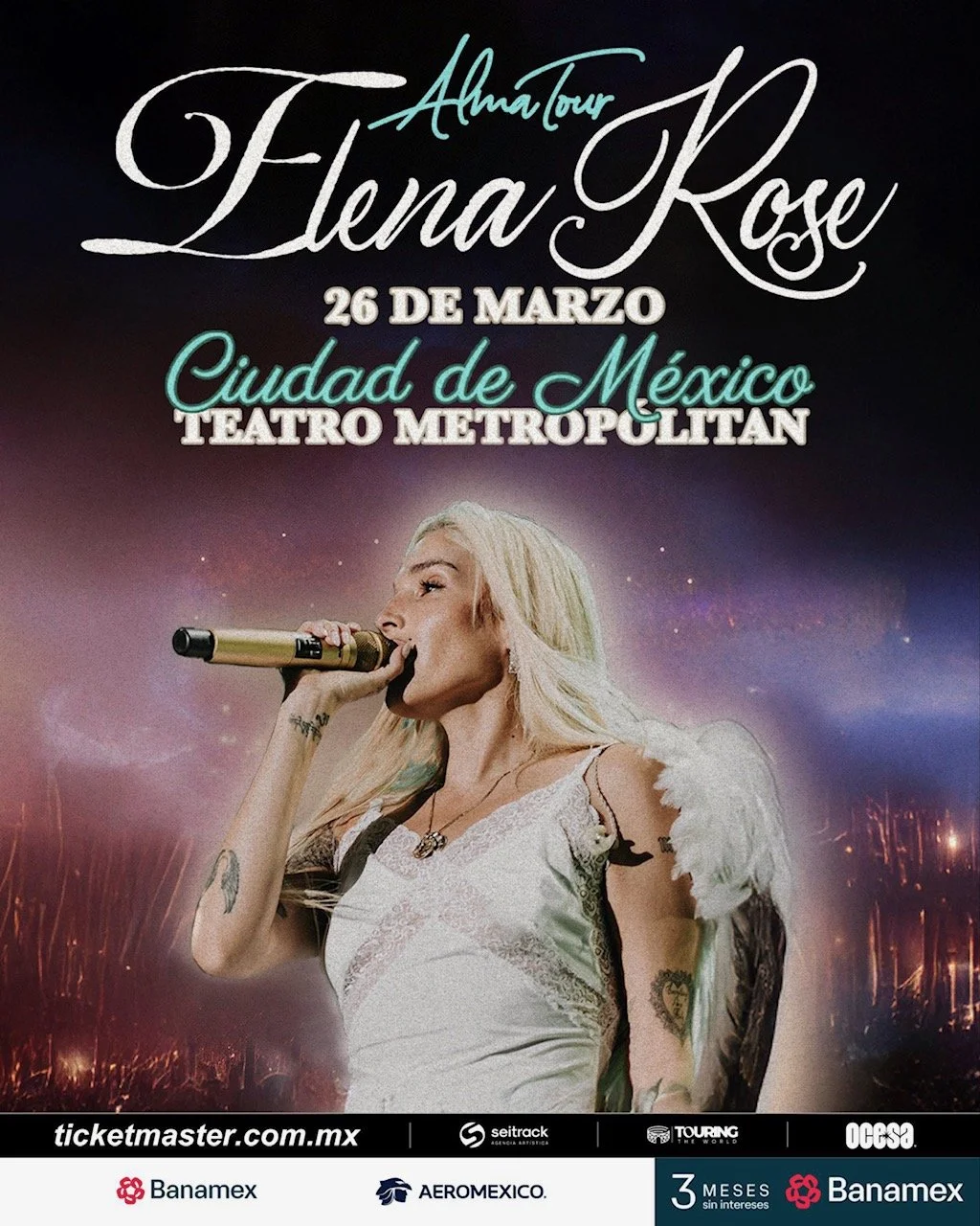 La cantante, compositora y productora puertorriqueña Elena Rose presentará su espectáculo en el emblemático Teatro Metropolitan de Ciudad de México el próximo 15 de marzo de 2026, como parte de su gira internacional que celebra la fusión de ritmos latinos y pop contemporáneo.