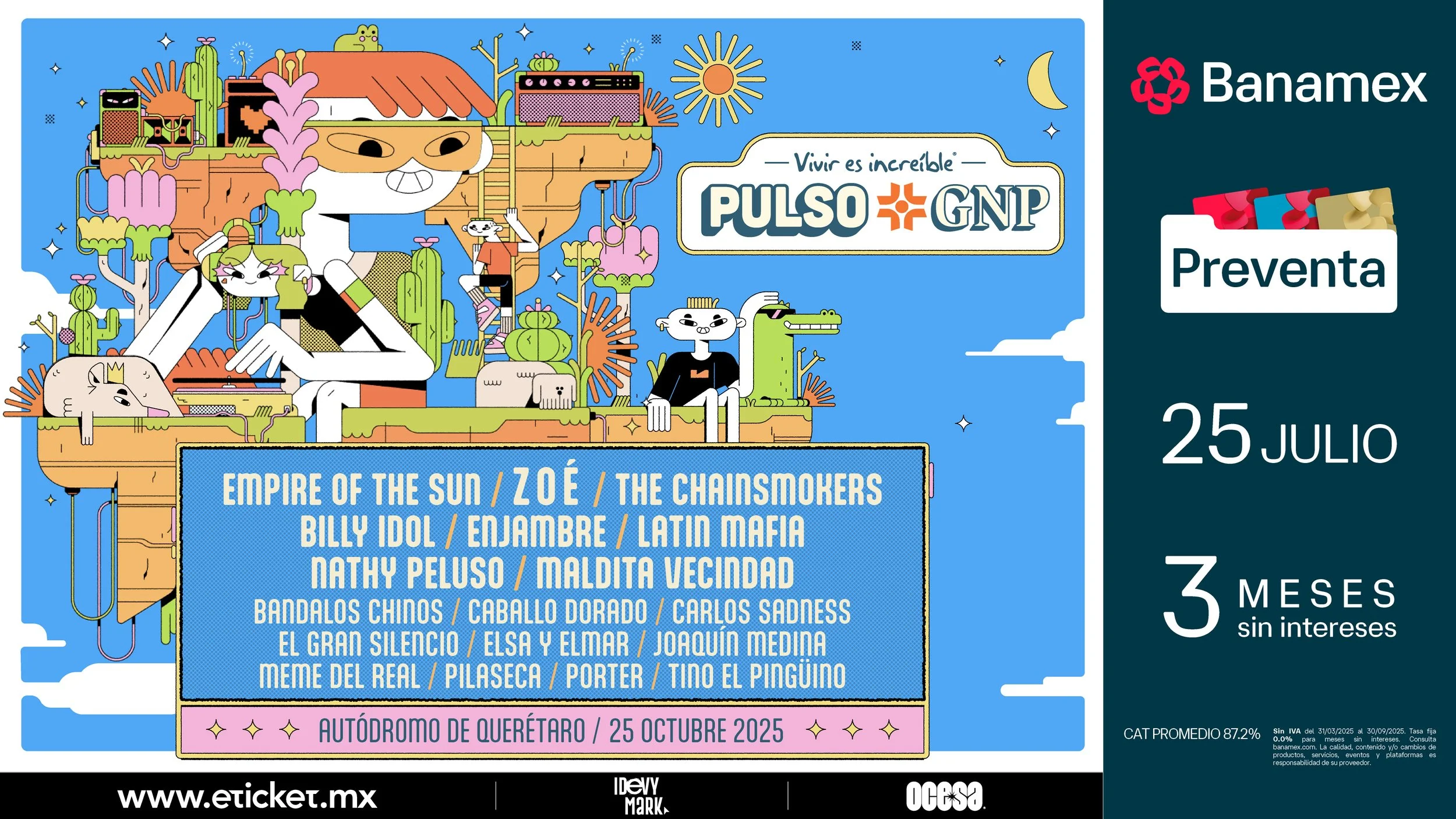 Querétaro volverá a latir al ritmo de la música en vivo. Pulso GNP, uno de los festivales más representativos de México, ha confirmado su esperada edición 2025, que tendrá lugar el próximo 25 de octubre en el Autódromo de Querétaro. Con un cartel vibrante que reúne a talentos nacionales e internacionales de primer nivel, el festival promete una jornada inolvidable cargada de emociones, sonidos e impacto cultural.